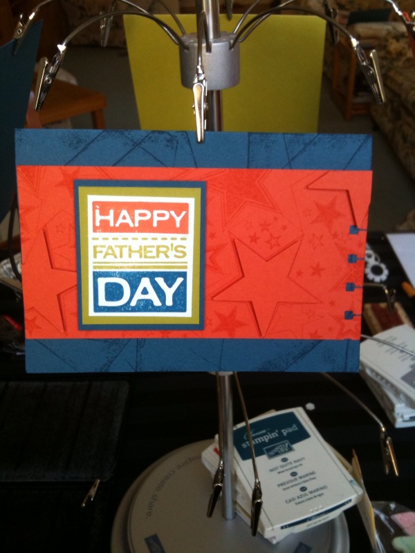 I can't believe I forgot to show you the projects everyone made at Friday night's fundraiser! Sadly I only have a photo of the one I designed/prepped. I'll have to show the rest to you when I get back from Sydney. This card is actually a CASE of the cover of the catalogue! Look familiar?